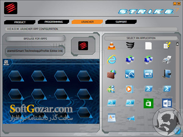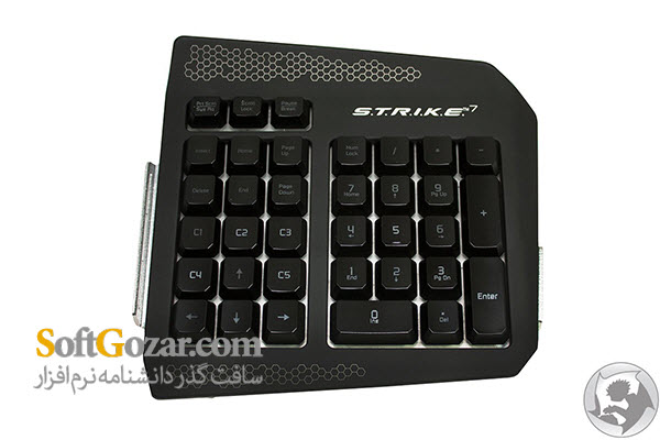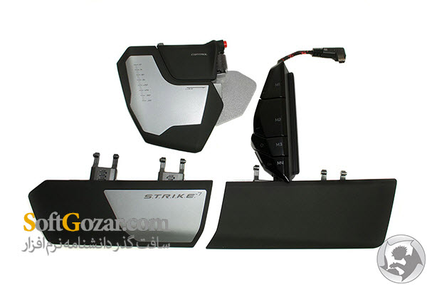 آخرین جزئی که در استرایک 7 به آن میپردازیم «نوار کاربردها»ست. توسط این نوار 4 دکمه قابل برنامهریزی، دکمههای ماکرو به سیستم اضافه میشود. در کل که در نظر بگیریم، 24 دکمه قابل برنامهریزی و تغییر داریم، اینها را میتوان به وسیله نرمافزار ویرایش پروفایل موسوم به «اسمارت» SMART تنظیم نمود. محل قرار گرفتن کف دست نیز سهتکه بوده و چرخانک و دکمه «عمل» Action دارد. محلهای قرارگیری کف و مچ دست را میتوان بسته بهراحتی خود به دستگاه اضافه کرد.