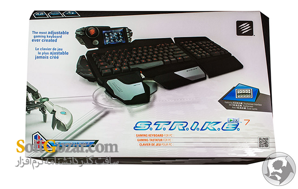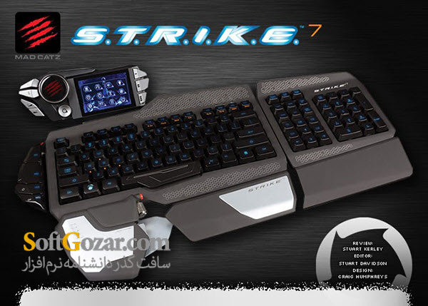 امروز میخواهیم صفحهکلید بازی شرکت «مد کتس» (= گربههای دیوانه) Mad Catz با عنوان «استرایک 7» (= ضربه 7)S.T.R.I.K.E. 7 را بررسی کنیم. استرایک 7 مانند دیگر محصولات مد کتس نظیر ماوس «رت» (= موش صحرایی) R.A.T. بینهایت قابل سفارشیشدن است. در این محصول یک صفحهنمایش لمسی تعبیهشده که میتواند روی صفحهکلید QWERTY سوار شود.