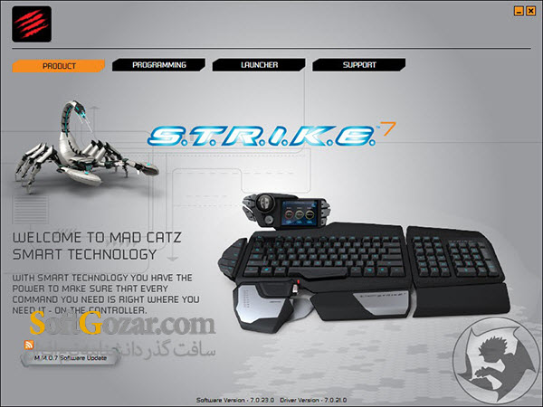 نرمافزاری که در صفحهکلید استرایک 7 بهکاررفته، کاربری آسانی دارد. این نرمافزار از سایت مد کتس قابل دانلود است. بعد از نصب، تنها در عرض چند دقیقه میتوان نرمافزار اسمارت و درایورها را تنظیم نمود.