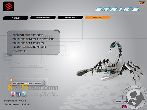 در نهایت به تب «پشتیبانی» Support میرسیم. در این قسمت میتوان به منابعی از سایت مد کتس دسترسی داشت: نکتههایی در خصوص صفحهکلید، دانلود جدیدترین درایورها و نرمافزار یا گرفتن پروفایلهای جدید بازیها.