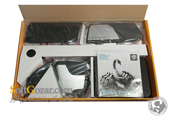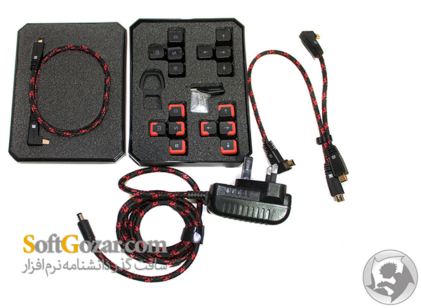 با باز کردن در جعبه میبینیم تمامی اجزا بهخوبی با مقوا و پلاستیک چیده و محافظت شدهاند. این کار به خاطر خطراتی است که ممکن است در عمل انتقال و ترانزیت متوجه کالا شود. هر کدام از اجزا، جداگانه در پلاستیک قرار داده شده است. در دفترچه راهنما نیز چیدمانهای گوناگونی که میتوان روی صفحهکلید پیاده کرد، تشریح شده است.