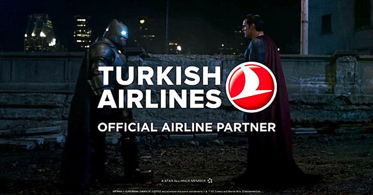 هواپیمایی ترکیه اخیرا دو ویدیو تبلیغاتی به مناسبت فیلم " بتمن در مقابل سوپرمن " ساخته است. این ویدیو ها، مسافران را به خرید بلیط برای دو شهر «متروپلیس» و «گاتام سیتی» دعوت میکنند.