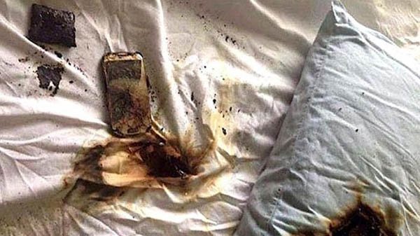 تلفنها در زیر بالش ایجاد شده بود باعث آتش گرفتن و سوراخ شدن بالش شده