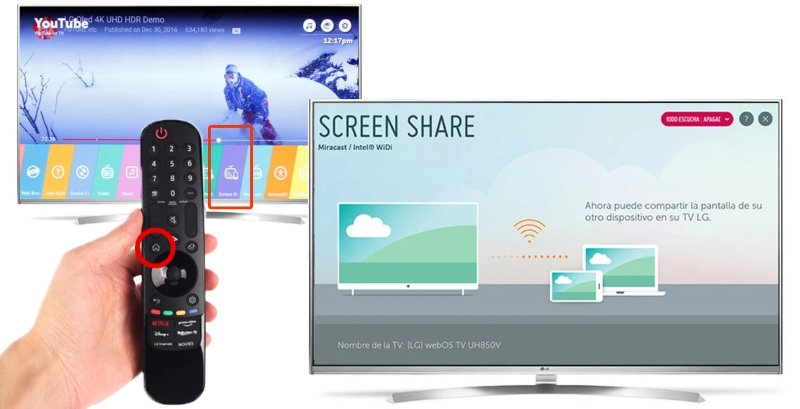فعال سازی: Screen Share در تلویزیون گزینه Screen Share را فعال کنید و از گوشی بخش Cast را اجرا کنید.