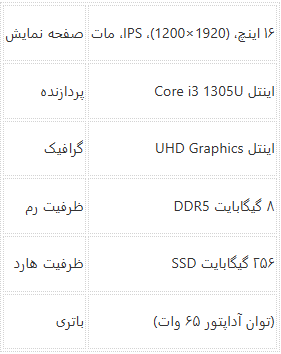 لپ تاپ ایسر 16 اینچی مدل Aspire Lite AL16-52P-31UT i3 1305U 8GB 256GB UHD