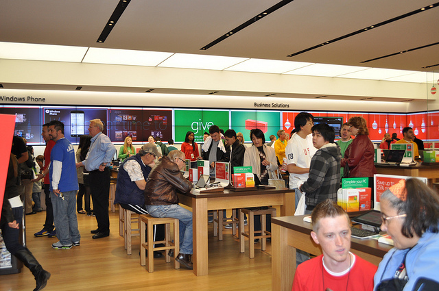 شما میتوانید یکی از این فروشگاهها را در تصاویر زیر ملاحظه کنید که با استقبال خوبی روبرو شده است. این تصاویر نشان میدهد مصرفکنندگان با مراجعه به این فروشگاهها مایل به دریافت آخرین محصولات مایکروسافت به طور مستقیم هستند.